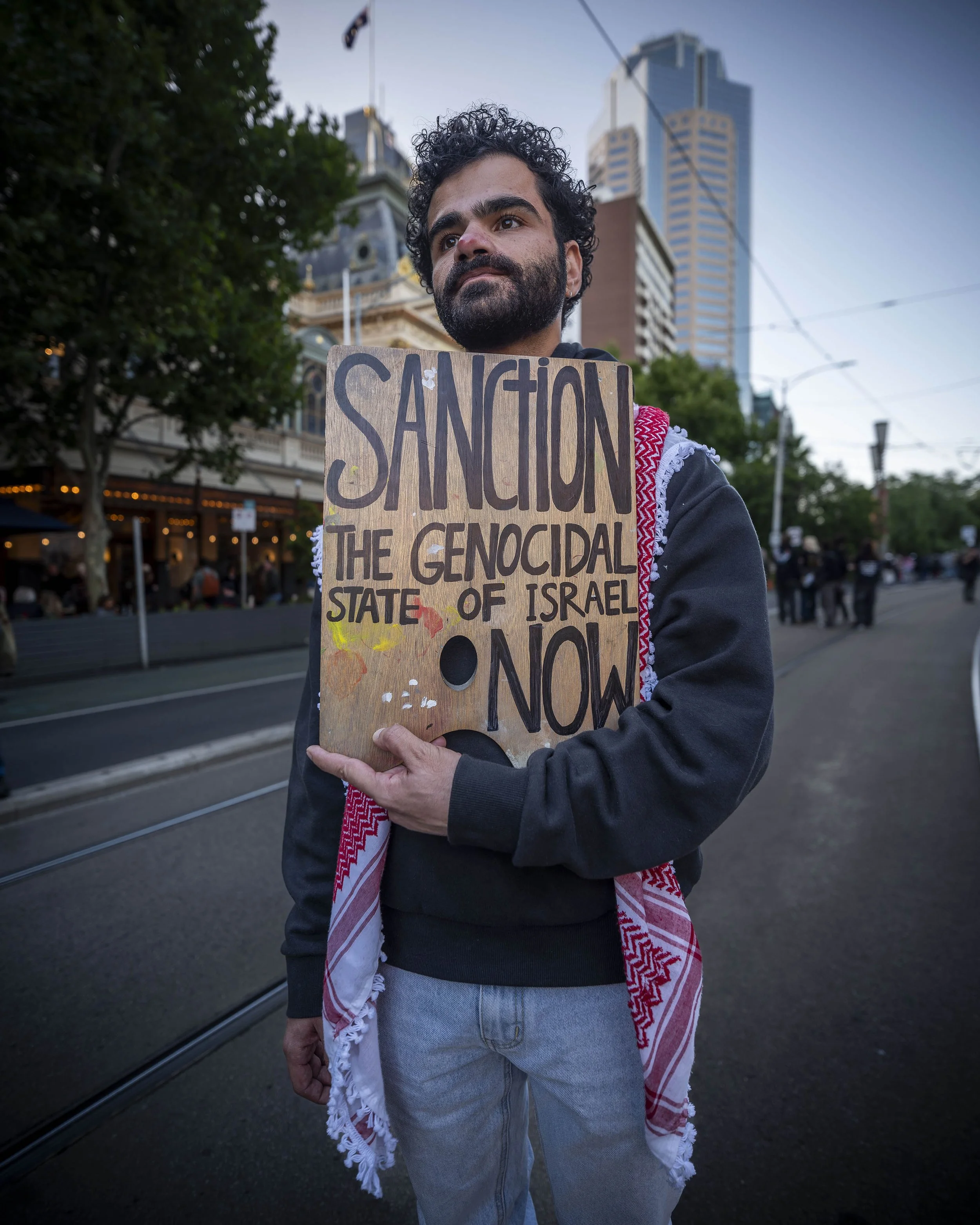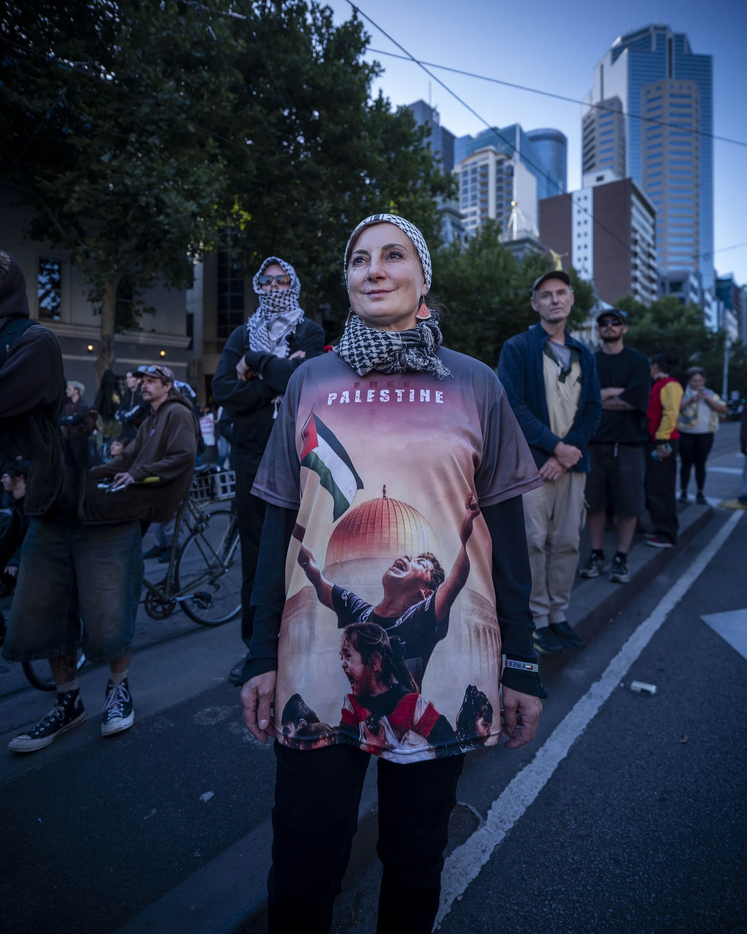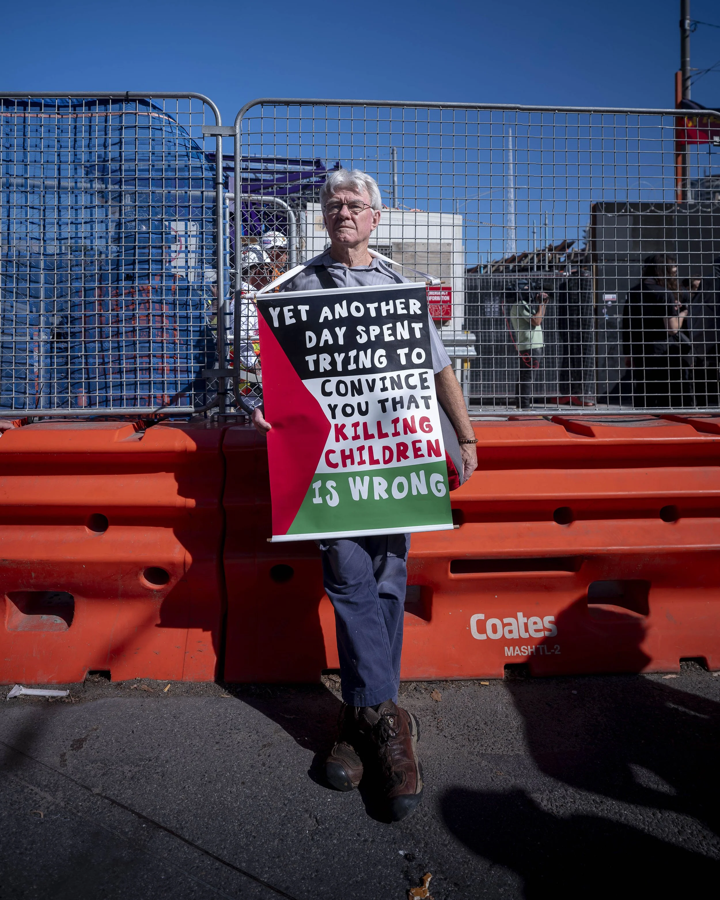 ‘When I’m available to come to Melbourne for the Palestinian protests, I attend them. I was at university 50 years ago and I read the university paper, that’s when I realised that Israel was a nasty piece of work. Since then, any opportunity to protest Israel’s actions against the Palestinians, I try to partake (in).